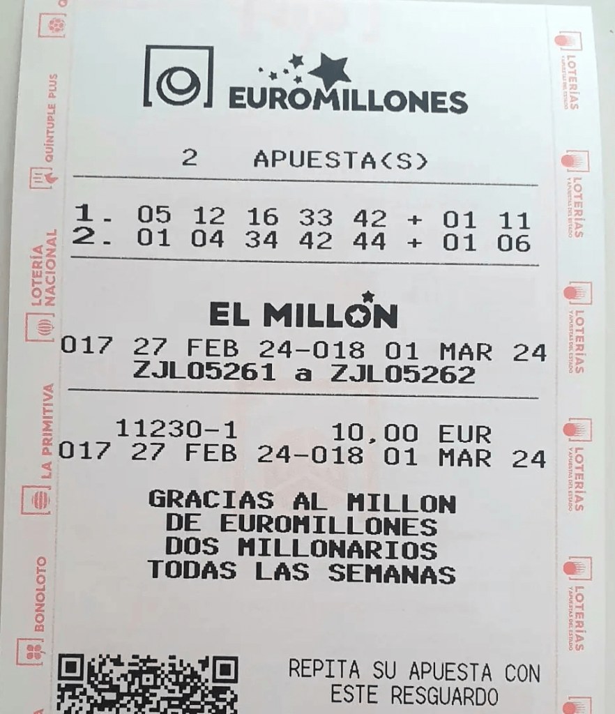- Por cada apuesta que realizas en Euromillones, recibes un código alfanumérico único y aleatorio generado automáticamente por el terminal.
